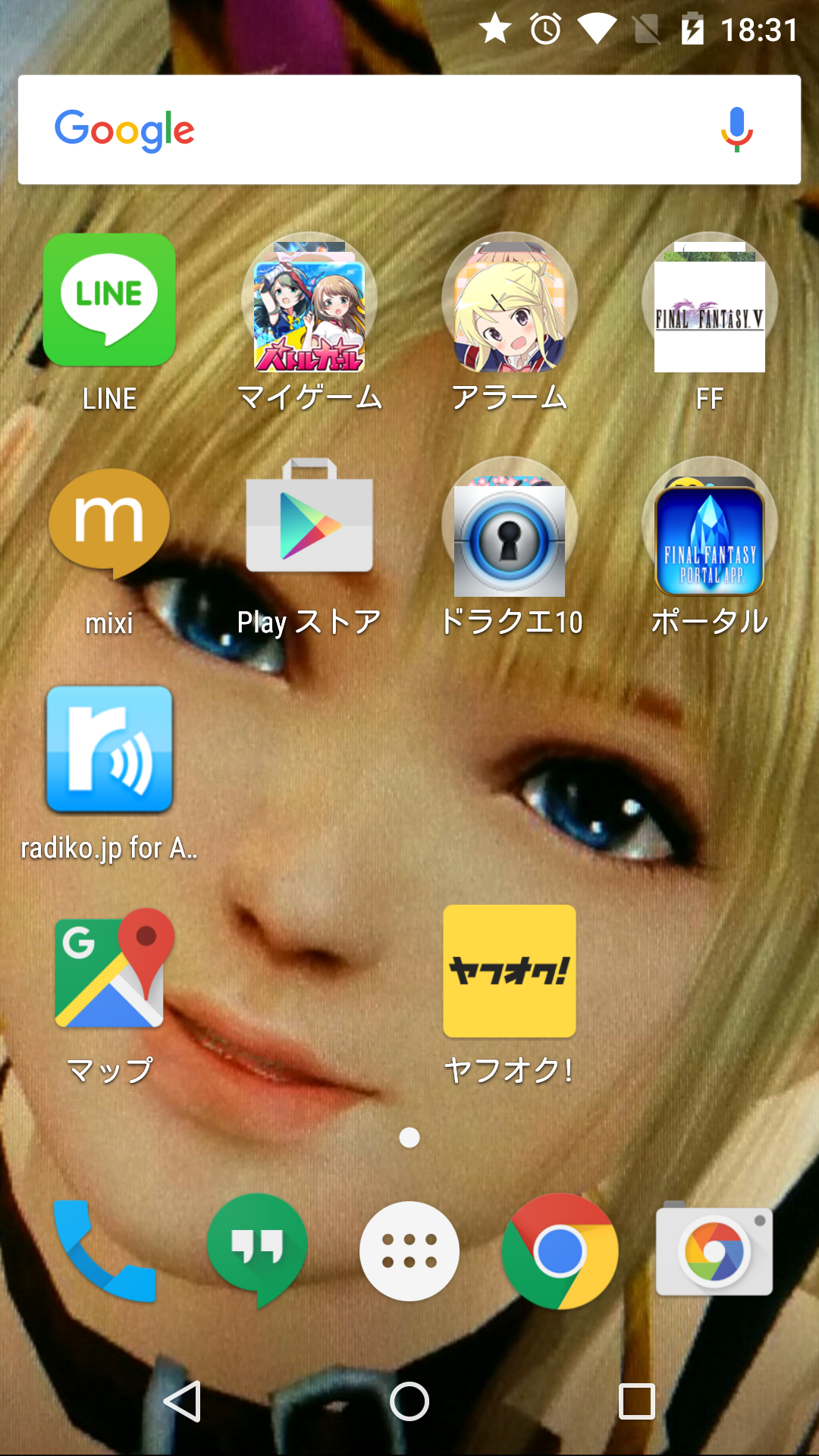今まで3画面くらいになってたんですけど、使わないのとかあるのでコンパクトにまとめてみましたwうむ、見やすい。一画面にしてみましたけど、なかなかよさげです(≧∀≦)あ、背景は嫁のマリーちゃんです。スマホつけるたびに可愛い笑顔が見れて最高でーっす。そろそろ新しい写真撮りたいんですけど1回全キャラ1周はしとこうとおもってるんで、それが終わるまではお預けです、くぅうううううう!!<パンチラ崎先生?(ぉ