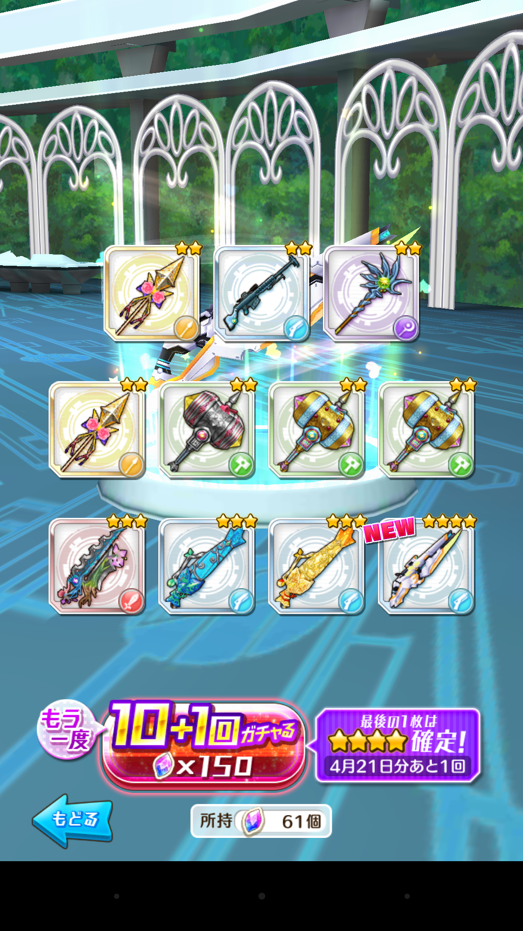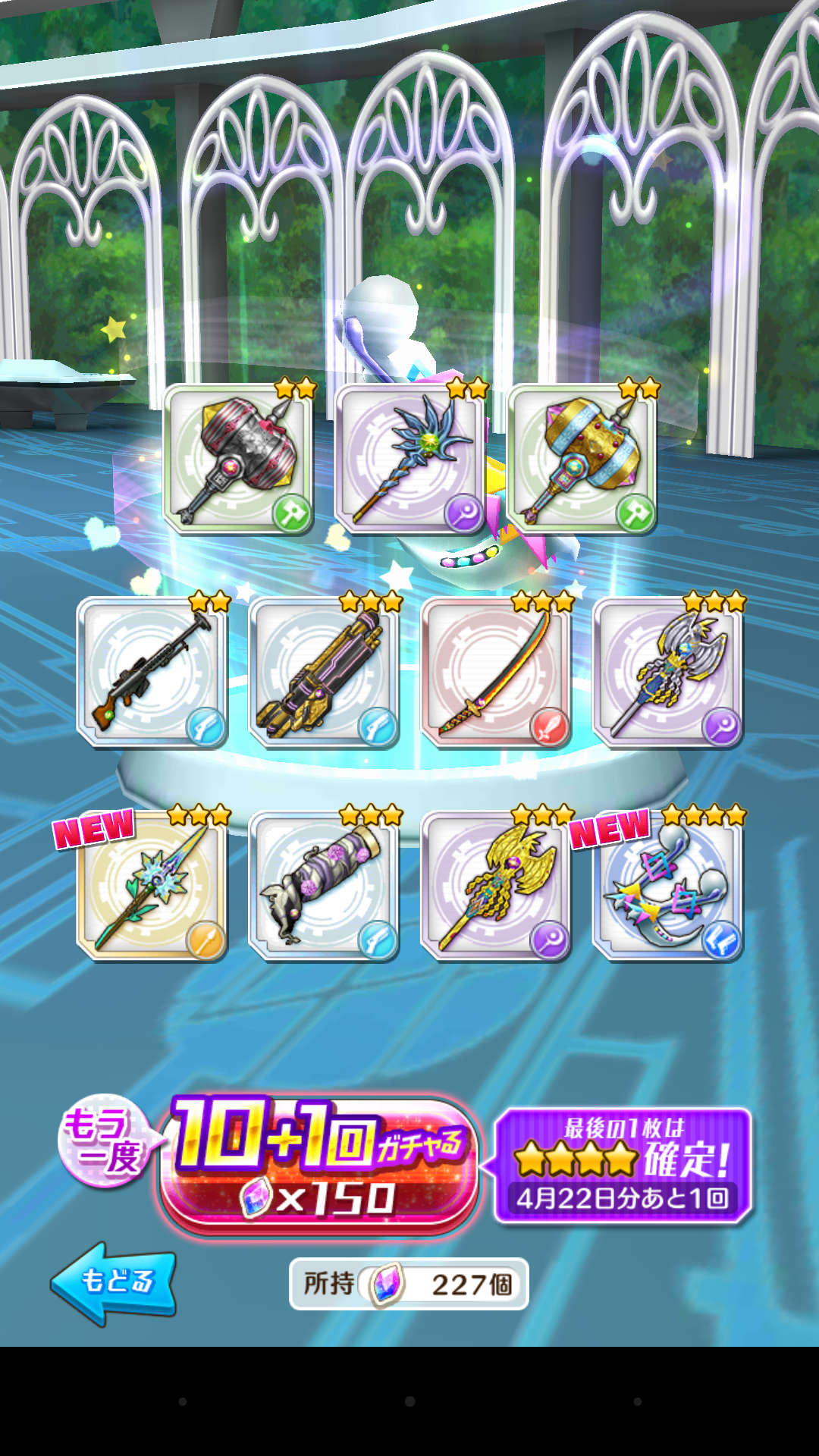 とまぁ、そういうわけでロッドで強いのは出たっぽいですけど、SP回復の剣は出てません。早く出してくれないとアプリ消しちゃうよ?(えーwwww