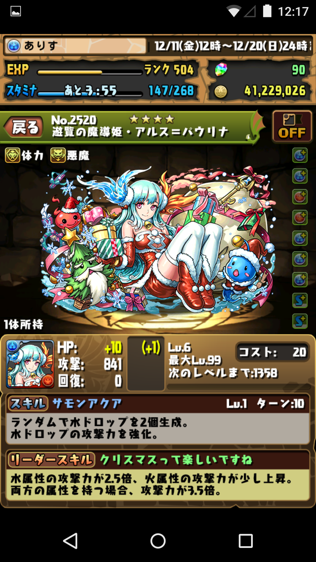 で、早速クリスマスガチャを引きましたが・・・おねーちゃんだったのはいいんですけど、銀で使い道ゼロorz