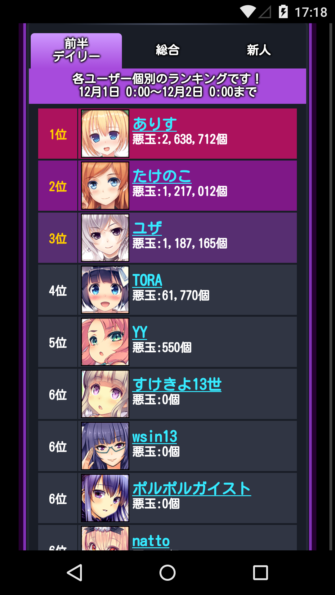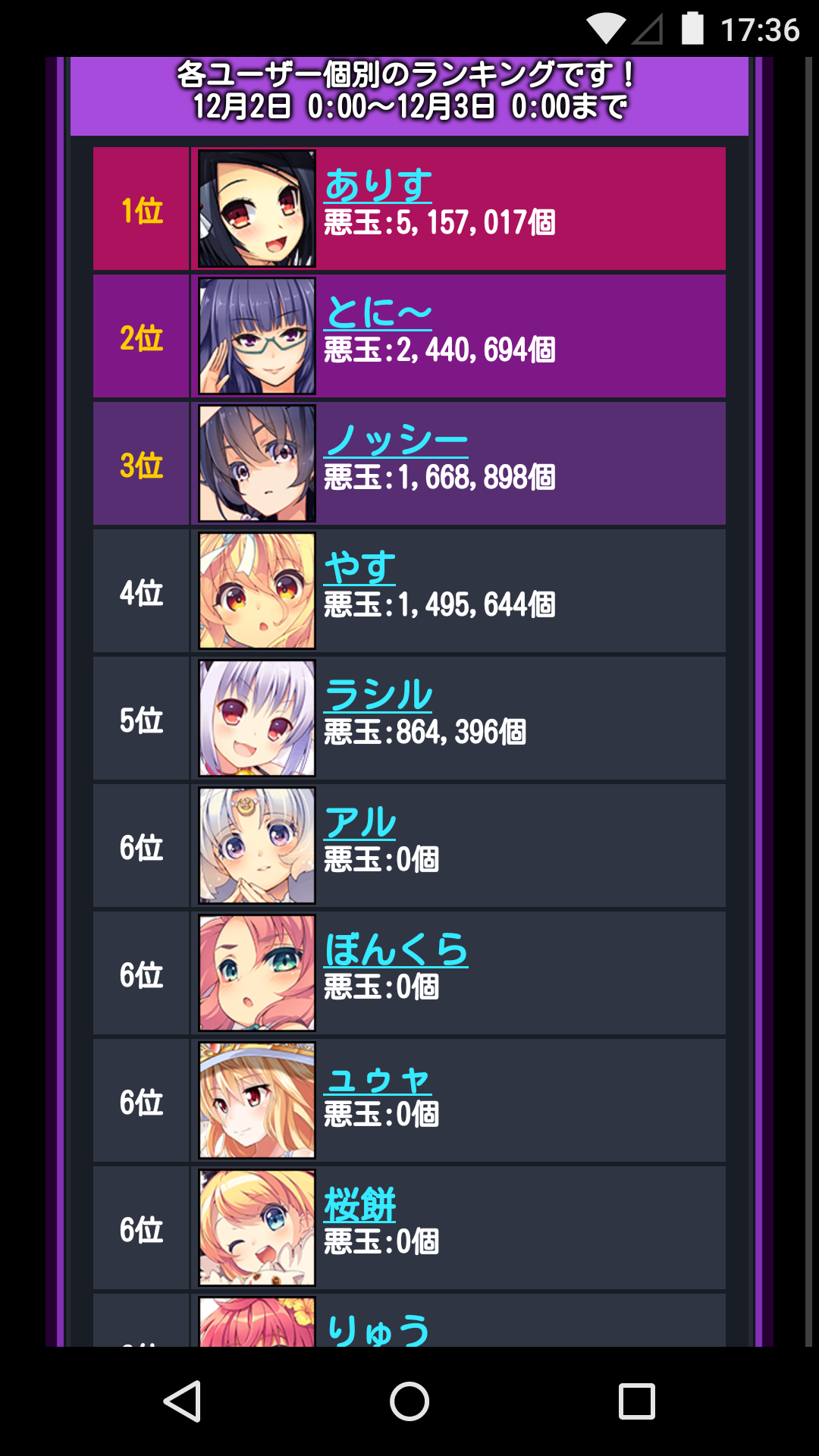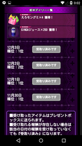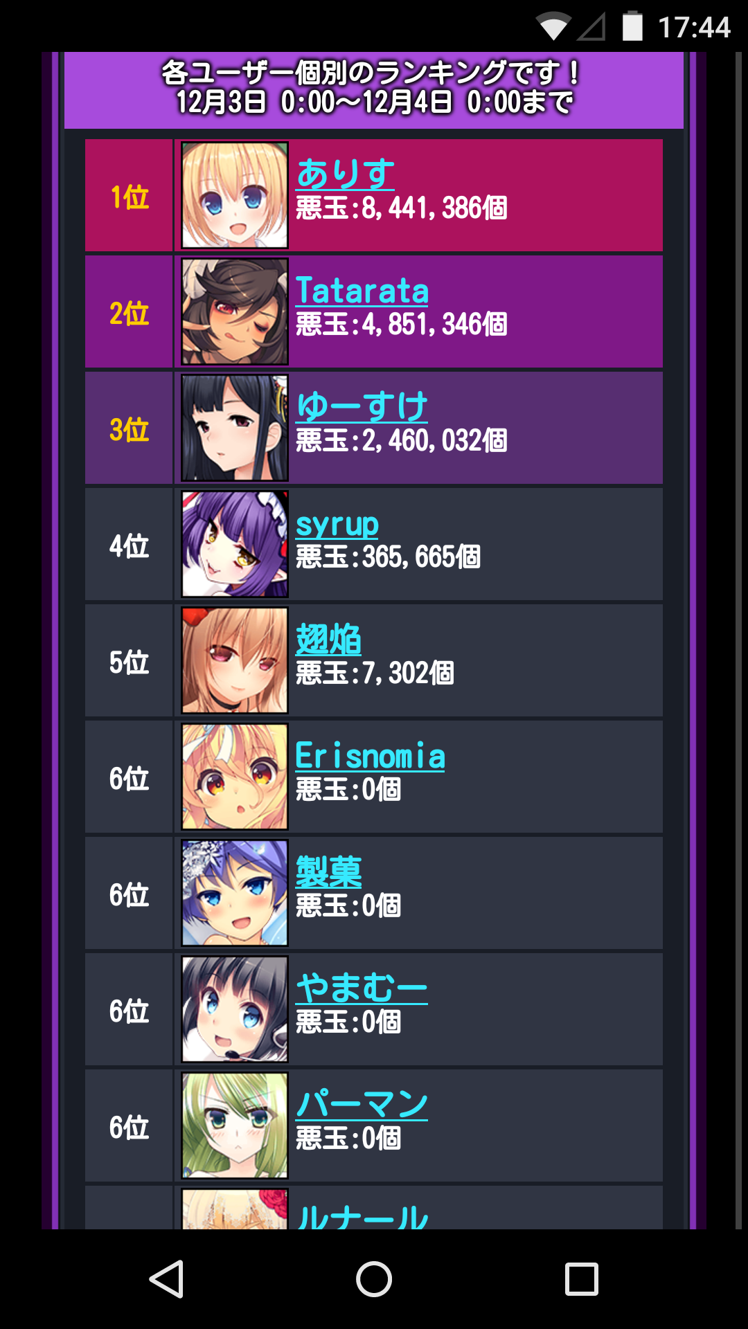 ほいで、今日も組み合わせがいいのか、デイリーランキング1位に君臨しておりますwでもねえ、今は0でも下の方に課金してる人とかがいるとですねー、夜中の23時から0時までの1時間でドバーッと上がってきたりするのでわかんないんですよね、最後まで気を抜かずに頑張りますw1位と2位とだとほんと、気合薬の配分が全然違うんで無課金でイベントで上位死守したいなら毎回1位を取って行かないとw
