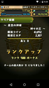 とりあえず、目標にしていたランク500に到達しました。これにて、パズドラのランク上げ作業はおしまいにしたいと思います。今までメインでやっていたのが、ランク上げだったので、ぷち引退と言っても過言ではないかなと思いますwでも、引退してアンインスコしたりはしないよ?パズル触るのは楽しいし、ここまで一生懸命育てたキャラをふいにするのは絶対に嫌ですし。