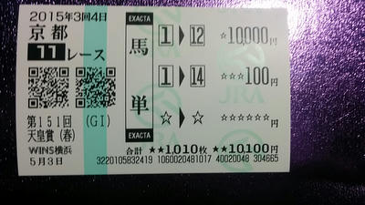 てなわけで、結果だけ見ると、マイナス20円で終わったんで悲しいですが、天皇賞春でのゴルシの優勝と、芦毛オレンジ馬券をヒットさせたので十分ですわ。儲ける為にやってるわけじゃないしね(ぉ