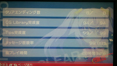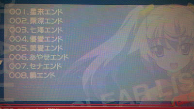 とりあえず、エンディングは全部見たしCGも見たのでメッセージがちょこっと埋まってませんが、もうこれでおしまいに致します!!