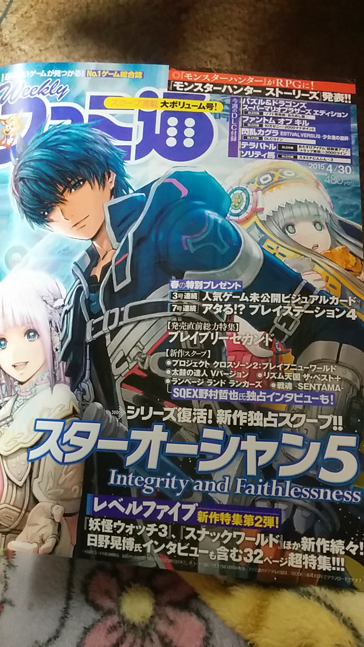 買いました♪スターオーシャン5出るんですねえ。昔かなり好きで1と2はかなりやり捲くりましたが・・・もう据え置き機(PS3とPS4で発売予定)でRPGは出来ないプレイスタイルになっちゃったんで、スルーですw上から見下ろし型じゃない、TPSみたいな360度回転式のロープレは、無理!w
