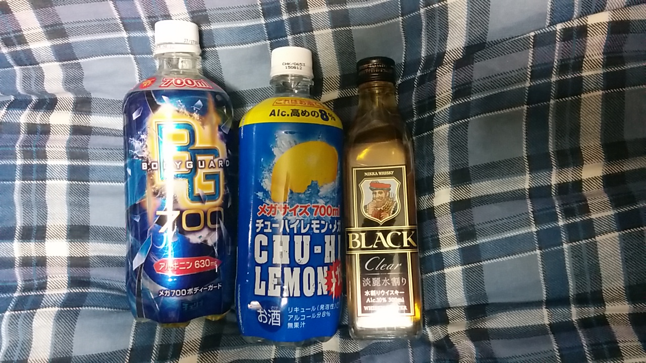 ほいで仕事帰りにロー100で買い物。久々にボディガード買いました。後から思いましたけど、これで108円はくそ安くね?(ぉ 流石にモンスターと比べるとアレですけども、アルギニン入っててこのサイズで108円はマジですげーなーと思いました。メガサイズチューハイは、これ1つしか置いてなかったのでこれにしました(ぉ 期間限定だったとはいえ、りんごうまかったな~、また出して欲しいです。ブラックニッカは、まさかのジョニーウォーカータイプのが200円を切ってたんで買ってみました。ただ、純正ウイスキーではなく、水割りされてるヤツみたいでした。だから安かったのかも。でもまぁ、飲むとしたら水で割って飲むのでこれで宜しいかとw