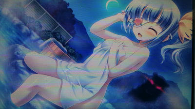 しました~。一緒に温泉に入るとか、本多ちゃんの水着よりも露出面では上ですし、声もキャラもかわいいんですが・・・嫁にはならないかなあ。いいとこ彼女どまりなんですよね、いい子なんですけど・・・抱くまではいかない、といいますか(ぉ ちなみに後ろで目が光ってるのはクマです。幼少期からのお友達だそうで、主人公が襲わないか監視してるみたいです・・・お目付け役が居る子はいらないですッ!!<激昂(ぉ