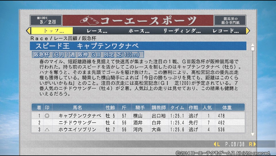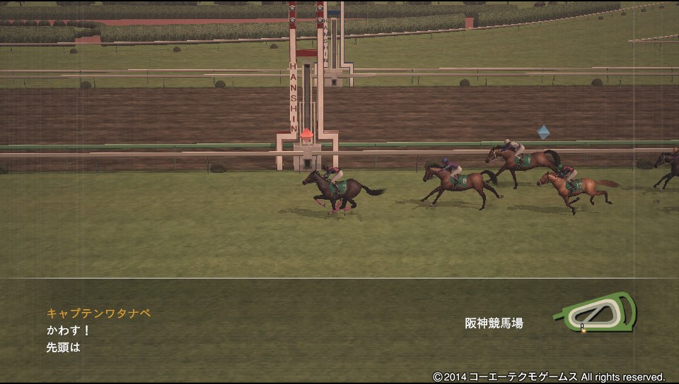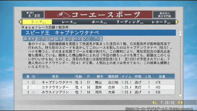 阪急杯にでたキャプテン。ほんとこの馬賢くて、サッと2番手につけるんですよね。で、直線では逃げ馬をかわすだけって感じでw