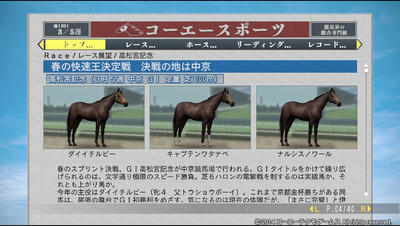 G1に王手でしょうか!?楽しみです~。ライバルは、シルクロードSでキャプテンに勝ったナルシスノワールと、素質が高く評価されているダイイチルビーちゃんだよ!