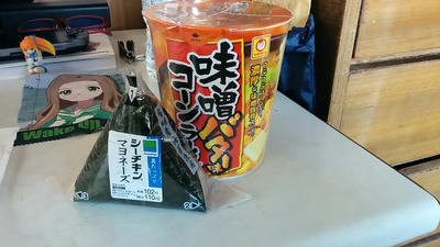 今日のお昼に食べたカップめん。スープ美味かったです。食べた後に手前にあるおにぎりを沈めてラーメンライス風にして2度楽しみました(≧∀≦)そして、背景に何故かいるキツネのアカネたん可愛い(ぉ