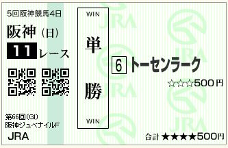 札幌、兵庫などいろんなとこを回って精神的に鍛えられているラークちゃん、ここまでなら、一発あるかなって思いまして。来年はまたどうせ強いのが出てきて隠れちゃうと思うんで、買うなら、勝つならここしかないかな?と思いまして、思い切って単勝も買ってみました。