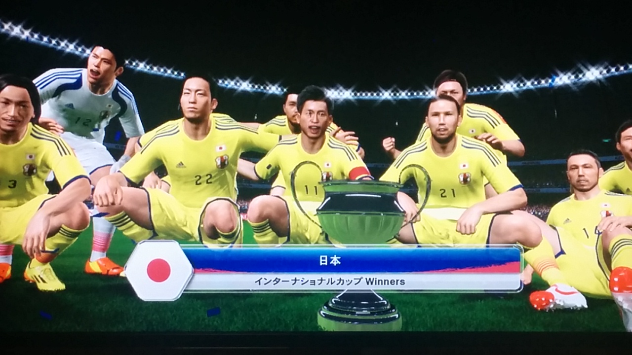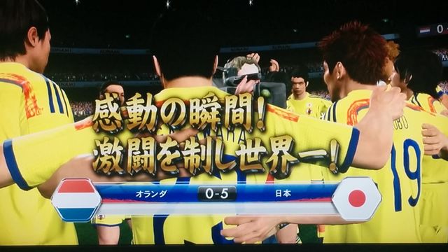 いやぁ、よかったです・・・。遂に念願が叶いましたからね。昔、まだ顔が誰だか認識できないレベルのPSのウイイレ3で、フランスワールドカップ優勝したことはありますけど、ここまでリアルフェイスのカズさんで優勝したのは初めてですからねえ・・・。いやぁ、現実じゃ絶対に無理なことをゲームでここまでリアルに体験できるとはね・・・ほんと、いい時代になったもんです(≧∀≦)