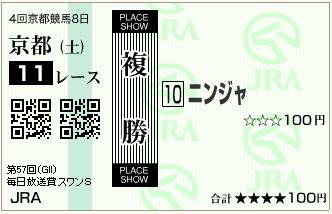 で、前日馬券ですが、芦毛いないので、別のを買いました。