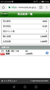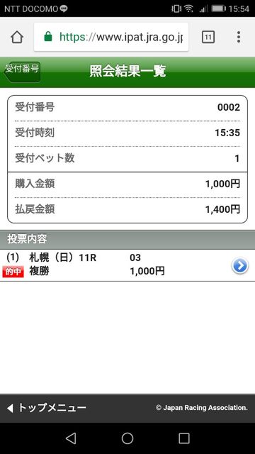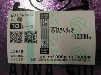 帰りの電車でテイエム迅速の複勝100円買って、10円貰ったノワ下です。10円でも増えたら嬉しいです♪