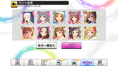 デレステのガチャも、一応SSR1枚きたのでよしとしておきますwないよりましww