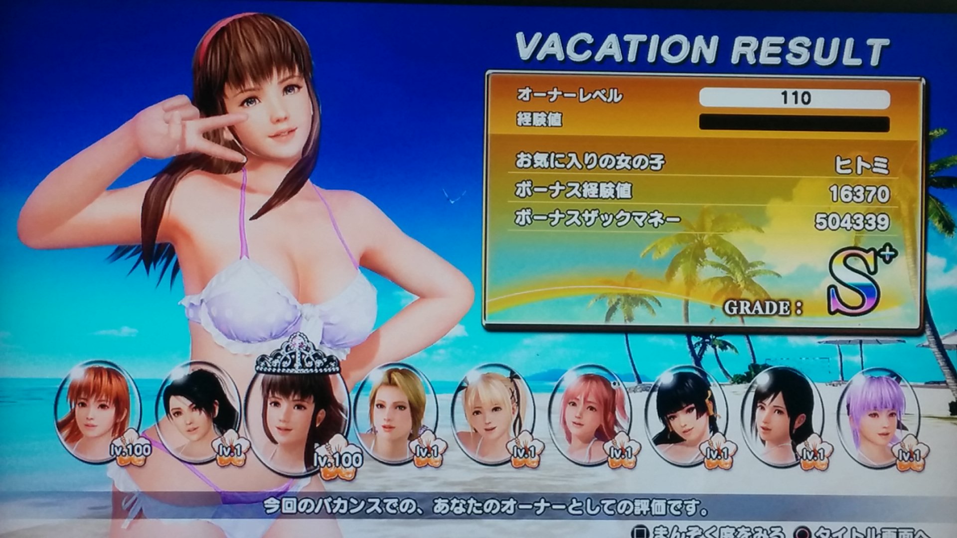 そして、エロバレー3、オーナーレベルに、かすみ、ヒトミのレベルもカンストしました!これにて終了!・・・でも、たまにVRで覗きに行きます、おぱんちゅを(ぉ