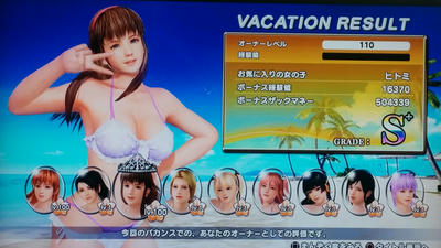前にちょっと書きましたけど、サービス開始当初と比べたらアプデでかなりマシと言うか、良くなってますわこれ。前は、水着を渡すのに、セーブしたデータをUSBにコピッて、再開して渡してみて受け取らなかったらUSBからデータを本体へ上書きしてもう1回・・・みたいなたいへんな作業がありましたけど、今はまず渡したい水着がある子以外で始めて、夜にホテルに戻ったときに、渡したい子にプレゼントを贈るでいけるみたいです。普通に渡しちゃうと突き返させちゃうこともあり、そうすると再度買った金額の半額を支払って包装して渡しなおす…か、前述したリセット作戦になるわけなんですけど、この、自分の選んだ子以外に渡す作戦だと、仮に渡しそこなってもそのまま包装されたものが次の日の夜に戻ってくるので、何度でも渡しなおしが出来る上に、嫌いな水着を渡しても好感度が落ちないみたいなんですよね!これは素晴らしい仕様変化ですよ。貰ってくれなくても、毎晩再度プレゼントを贈るで選び続ければその内貰ってもらえますから。ちなみに、ちゃんと確認したところ、かすみちゃんでプレイして、ヒトミにV字の白ビキニをプレゼントしまくっていたところ3回目くらいで戻ってこなくなったので、その周のかすみちゃんを最後まですすめて、今度はヒトミではじめたところ、最初持ってなくてえー!?てなったんですけど、夜にホテルに戻ってクローゼット開けたら入ってました♪成功~(≧∀≦)これでほんと、だいぶ楽になりましたよwでも、イベントシーンを埋めるには渡すの成功して生着替えしてるときに、目を開ける!を選んで盛大に嫌われないといけないんで、最後はこれやって爆死します(ぉ