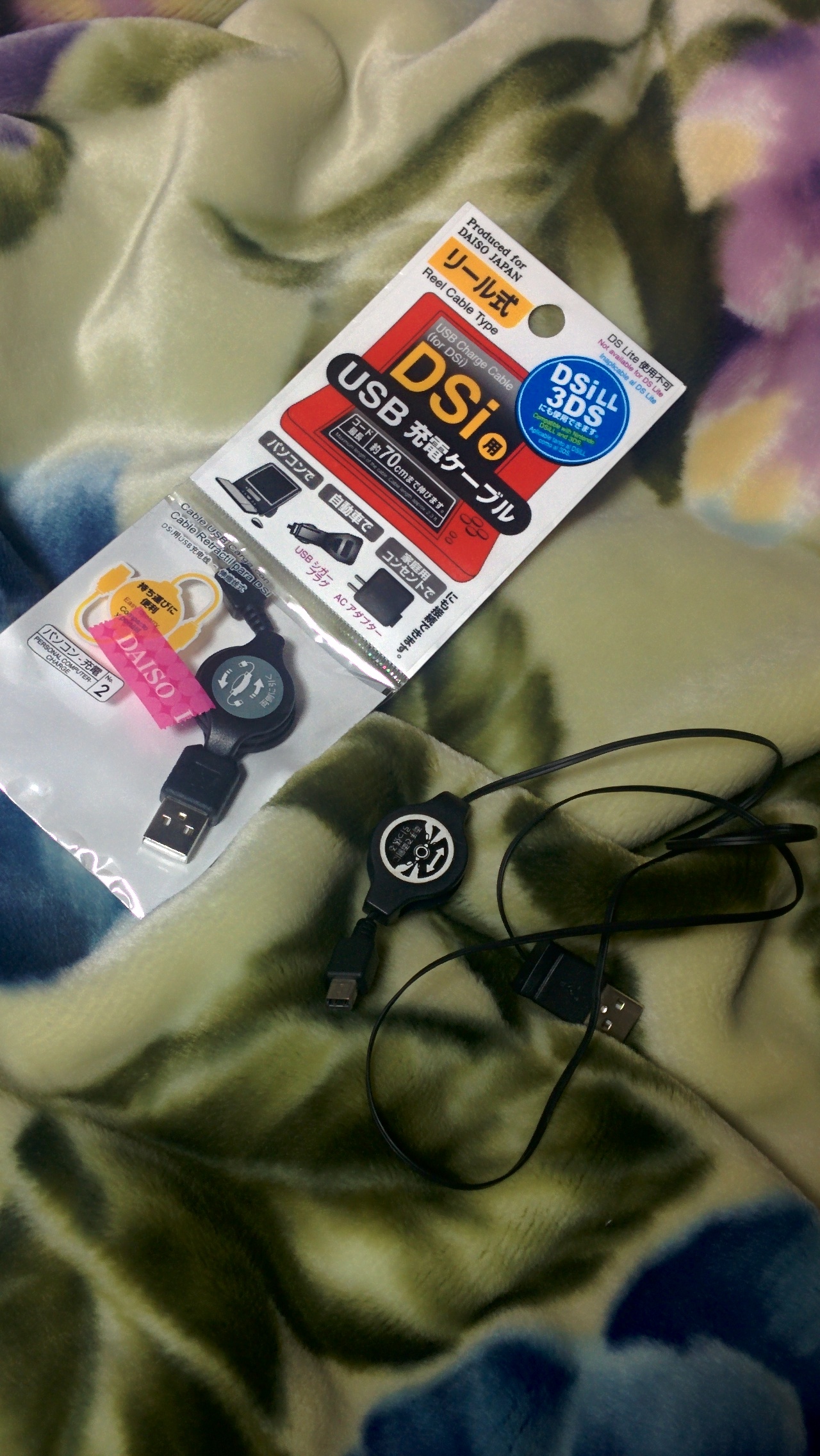 ダイソーさんは大手なので、3DSの充電コード売ってました!よっしゃ!右のが壊れたコードです。ほぼデザイン一緒ですけど、この間には3年位の差があるんですなあ(何w 早速充電してみましたけど、当たり前ですけどちゃんと出来ました!今まではオレンジの充電ランプがチカチカしてすごい気になったんですけど、つきっぱなしに戻ったのでよかったよかったですー(≧∀≦)