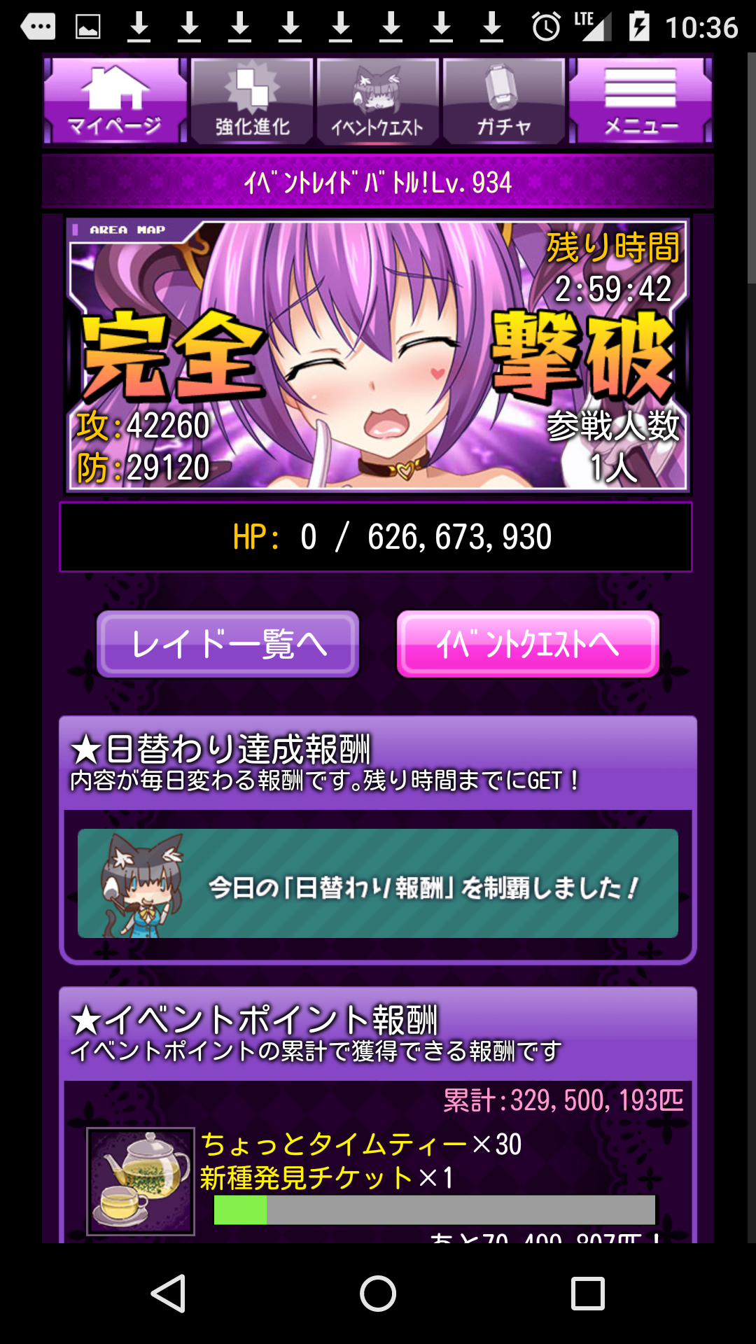 レイドボスは934レベルまで。カンストが999でしたが、そこまでやらないのがノワ下イズム(えーw