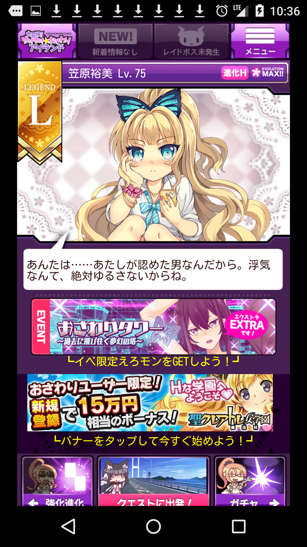 と、いうわけで、終わりました・・・。長い間ありがとうございました!最後に2500円だけ課金させてもらいましたけど、ほぼ無課金で長い間たのしく、えろく、遊ばせていただいてたいへん満足しています。たぶん、スマホのゲームで一番長く遊んだゲームだと思います。どうもありがとうございました!!!