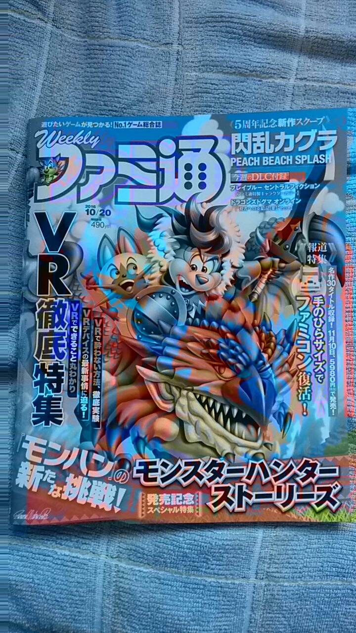 本日のファミ通ですー。表紙はモンハンのRPG、モンスターハンターストーリーズ。
