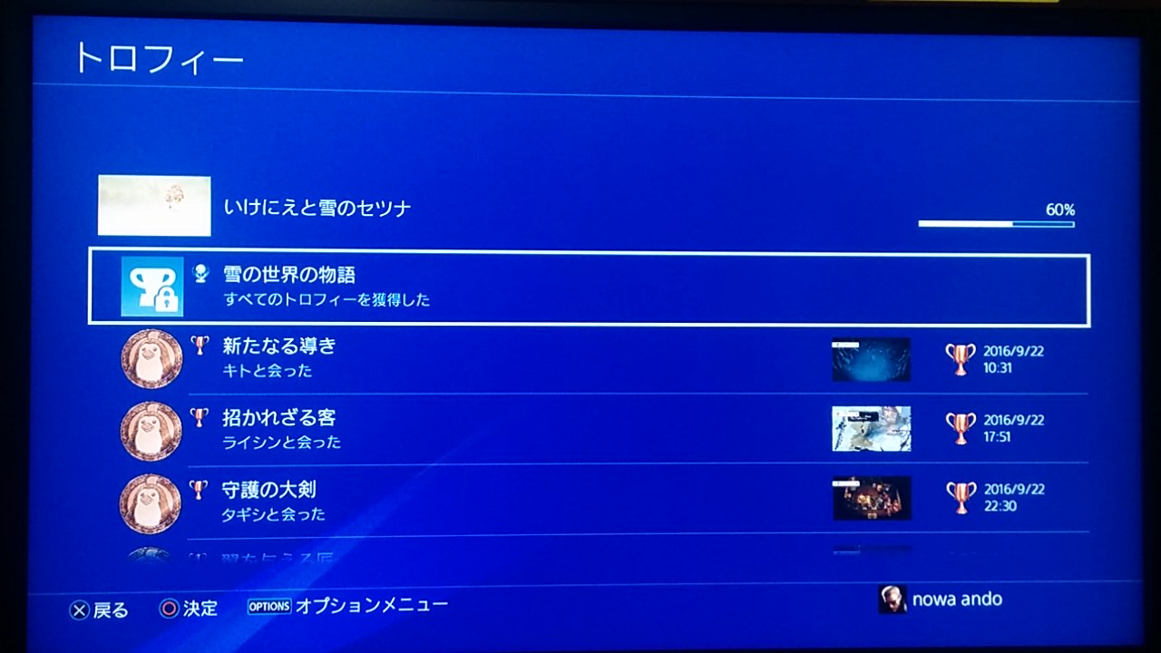 ちなみにトロフィーは60%でした。まぁ、狙ってやってないのでこんなもんでしょうw