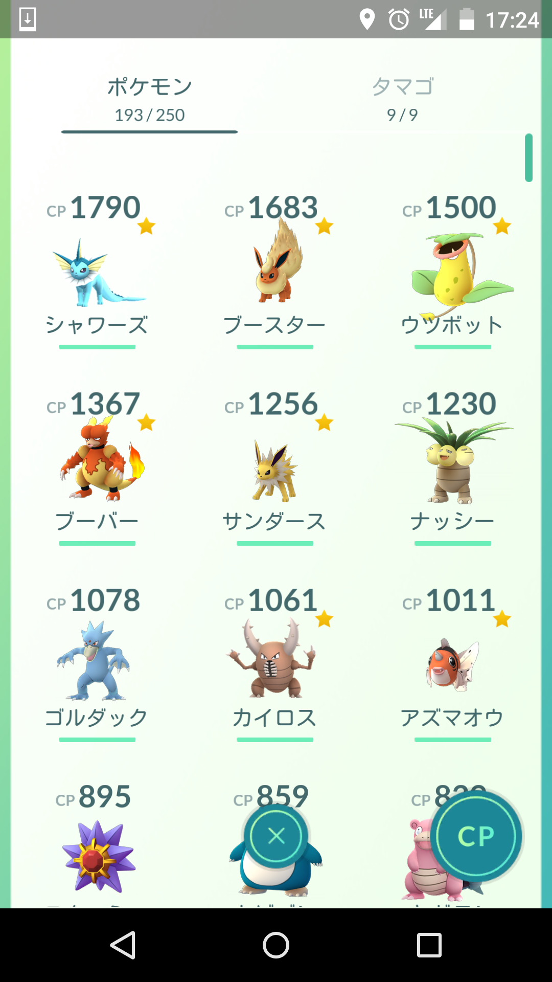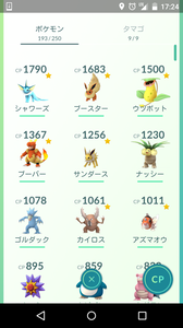 おまけ。ポケゴーようやくイーブイ3兄弟に進化できましたwサンダースがちょっと弱いですがw