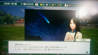 あと、ウイポ8ではじめて流星イベントを見ました!昨年は超大物コメントも出たし、ようやくウイポ8、自家生産のほうが楽しくなってまいりました♪