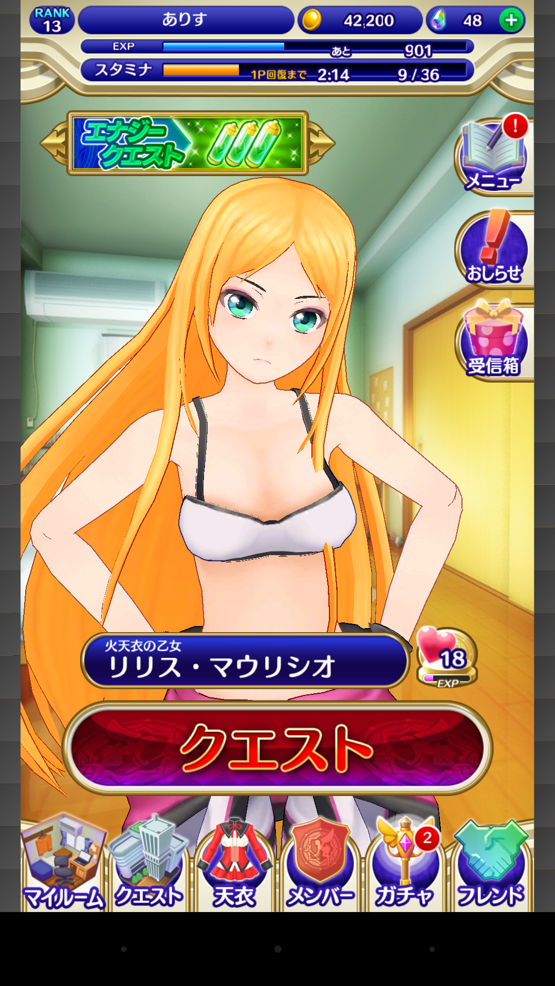 でした(何w 鍵がたまったので1つ上に進化させました。そしたら下着キタキタキタキタ━━━(゚∀゚≡(゚∀゚≡゚∀゚)≡゚∀゚)━━━━ !!!!!!!!!でした(ぉ まだすっぽんぽんまでは道のりが長そうですが久々にガチでスタミナ気にしながらスマホゲ遊んでます、楽しいです♪そりゃ、おなごのおヌード頂戴の為ですからなあがんばるしかありませんなあ、脱衣麻雀を本気で貫徹しながらプレイしていたあのころをふと、思い出しました。あの頃は土曜日ねなくても生きていけたな・・・(ぉ