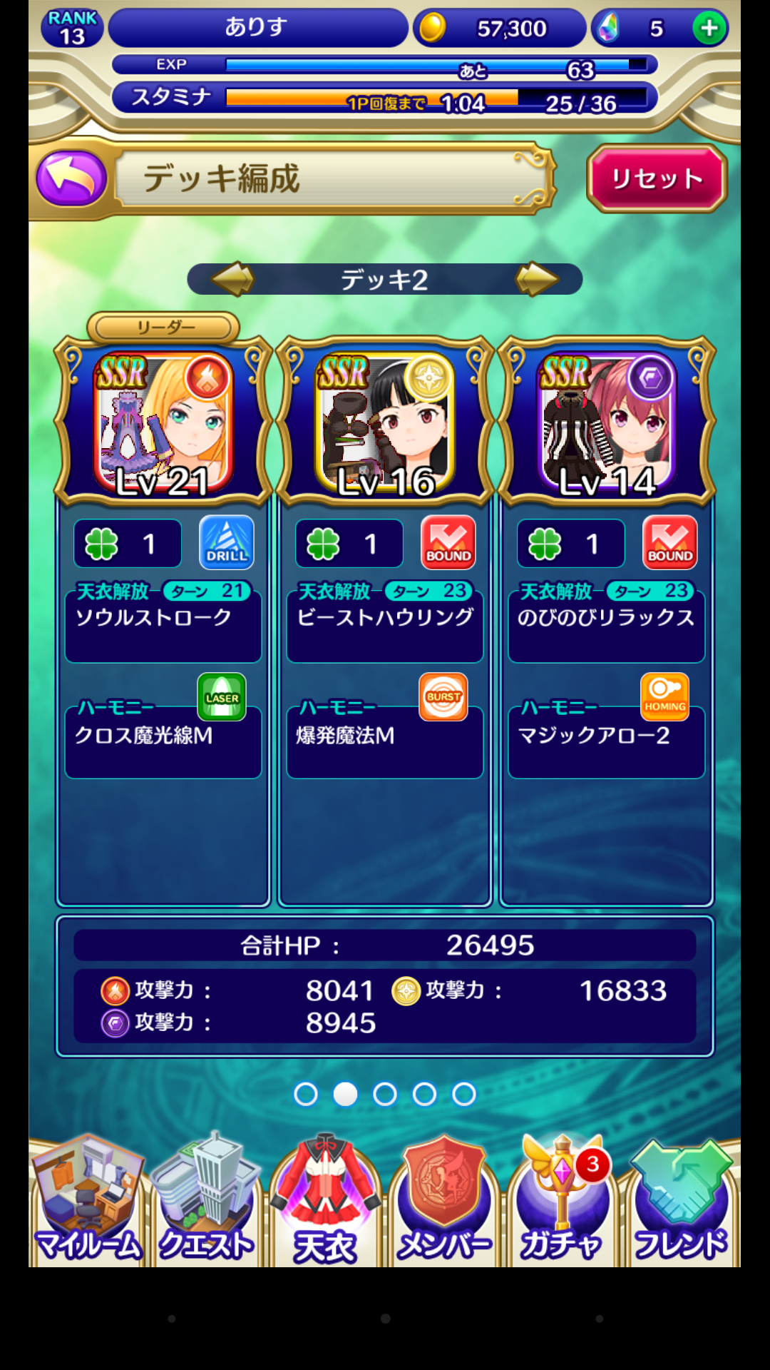 真ん中の黒髪の子は前に遊んでた時にげっとしたやつですけど、デッキはバトガと一緒で3人で1組なんでSSRで固められちゃいましたうおおおおおおおおお!!!