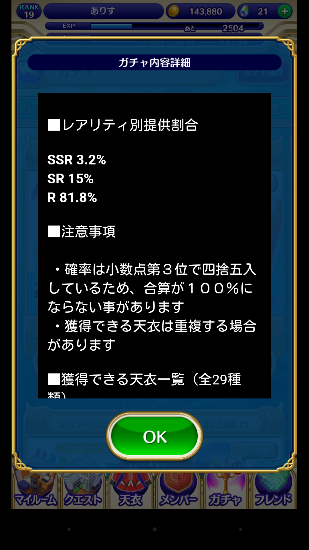 ちなみに運がいいのか今日からキャラ毎の限定ガチャが始まりまして、10連ガチャが初回のみ20個で引ける(通常は50個)らしいので、上のリリスたんと、もう1人年下妹系のラブライブサンシャインのルビィたそにちこっとだけ似てる子がいたので、ダイヤ(かけらとか魔法石みたいなもの)が46個あるんで、1回ずつ、引いちゃおうか~?となりましてwでもSR以上確定だけどSSR確定じゃないからどうせ出ないんだろうなあ・・・